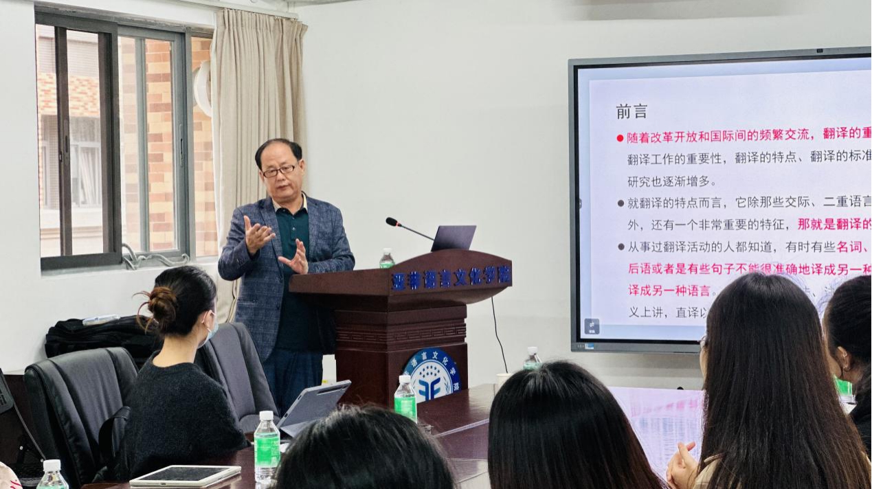 12月13日下午,山东大学东北亚学院朝鲜韩国系教授、博士生导师尹允镇应邀莅临我院,以“文学翻译的不可译性特征和翻译标准的思考”为题,就怎样翻译才能达到真正的“信”,做了一场精彩的讲座。本次讲座由朴香兰副教授主持,亚非语言文化学院全体研究生参加。
