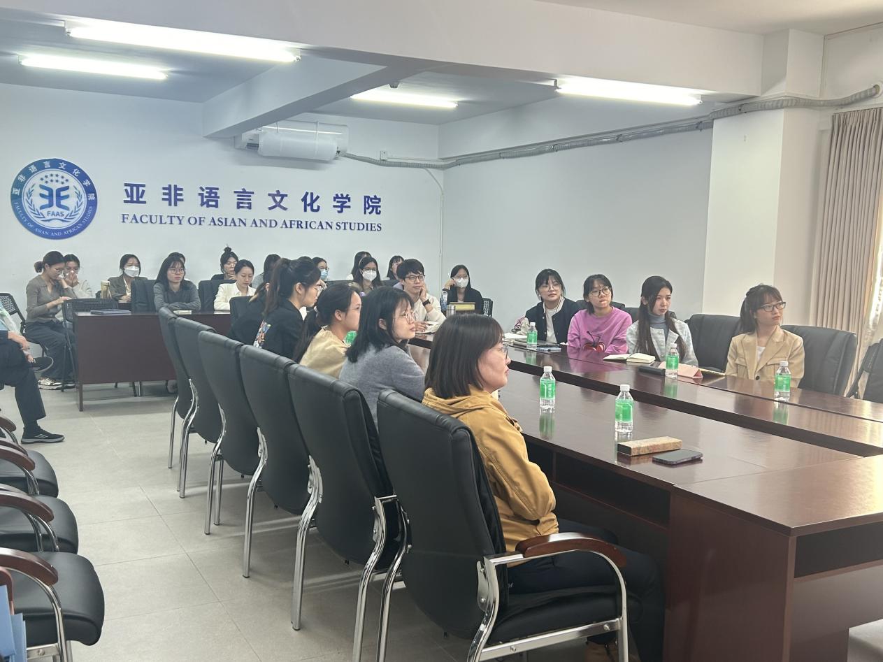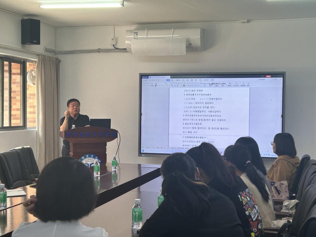 11月23日下午,我院邀请了延边朝鲜族自治州朝鲜语文工作办公室主任金千根老师作学术讲座。本次讲座由朴香兰老师主持,亚非语言文化学院全体研究生参加。金千根老师以“戴着镣铐跳舞”为题,分享了翻译的定义、标准、阶段、策略与要求等,为在场师生带来了宝贵经验和见解。