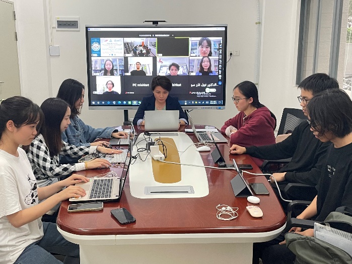会议以线上线下结合的方式召开,在中国三所高校-广东外语外贸大学、上海外国语大学以及北京语言大学设立分会场,另外两所的阿拉伯语系师生也出席了交流会。通过参加此次交流会,阿语系学生得以直接感受阿拉伯语高级别会议的现场与氛围,置身于纯粹的语言环境中,大家一致认为,不仅使阿拉伯语的语言表达能力得到实践和提高,而且对与阿拉伯文化有了更深入的了解。同时,作为阿拉伯语学习者,应该在专业水平上不断精进,发挥连接中阿双方的桥梁作用,为促进双方人文交流做出年轻阿语人的贡献。