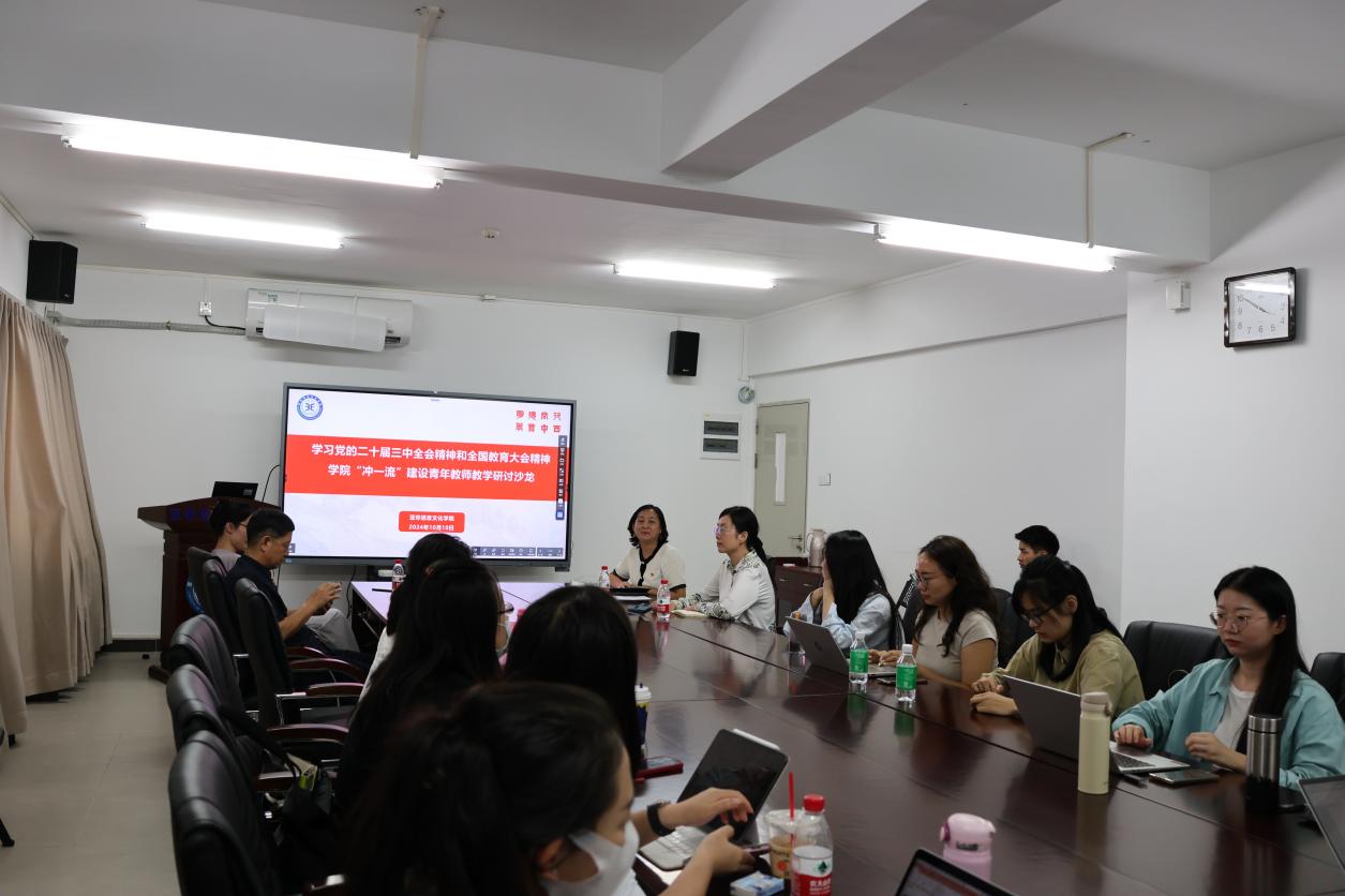 为深入学习贯彻党的二十届三中全会和全国教育大会精神,推动学院“冲一流”行动,提升学院青年教师教学能力,10月10日下午,亚非学院举办学院“冲一流”建设青年教师教学研讨沙龙。院长全永根教授做题为“积极拥抱数字化变革,外语类一流课程建设项目申报经验分享”的主题发言,学院院领导和青年教师参加,会议由副院长牛子牧主持。本次活动也是亚非学院“本科教学质量月”的一项重要活动。