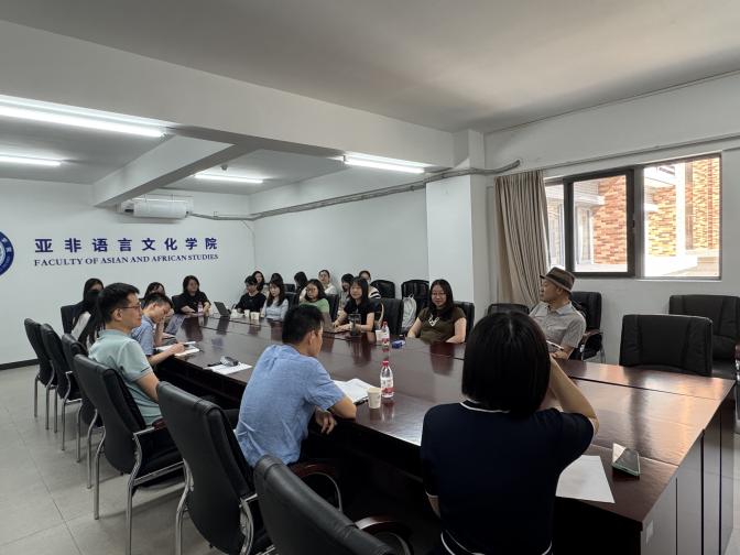 2025年6月20日,北京大学教授、著名南亚区域国别研究专家姜景奎教授应邀来到广东外语外贸大学亚非语言文化学院,与教师们就“AI 浪潮下的非通用语种教育革新”为主题进行座谈。座谈由亚非语言文化学院田克萍副院长主持,学院教师共同参与,现场座无虚席,学术氛围浓厚。