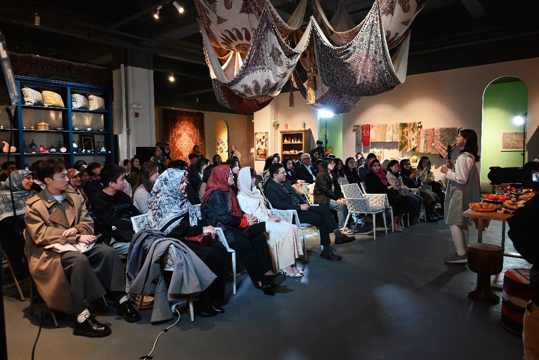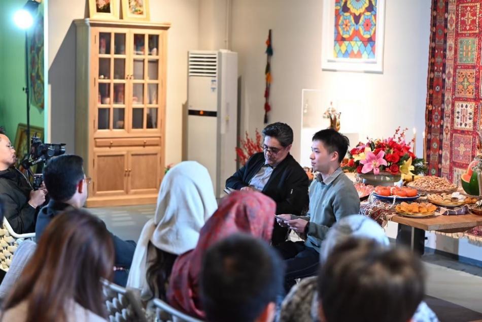 师生们还通过参与哈菲兹诗歌诵读环节,观看伊朗经典史诗《列王纪》朗诵和传统乐器表演,参观波斯地毯、珐琅、铜器、细密画等手工艺品,对伊朗的历史文化有了更直观的认识。活动结束时,主办方还为嘉宾提供了精致的伊朗美食,使大家在享受文化盛宴的同时,也体验到了伊朗的传统美食文化。
