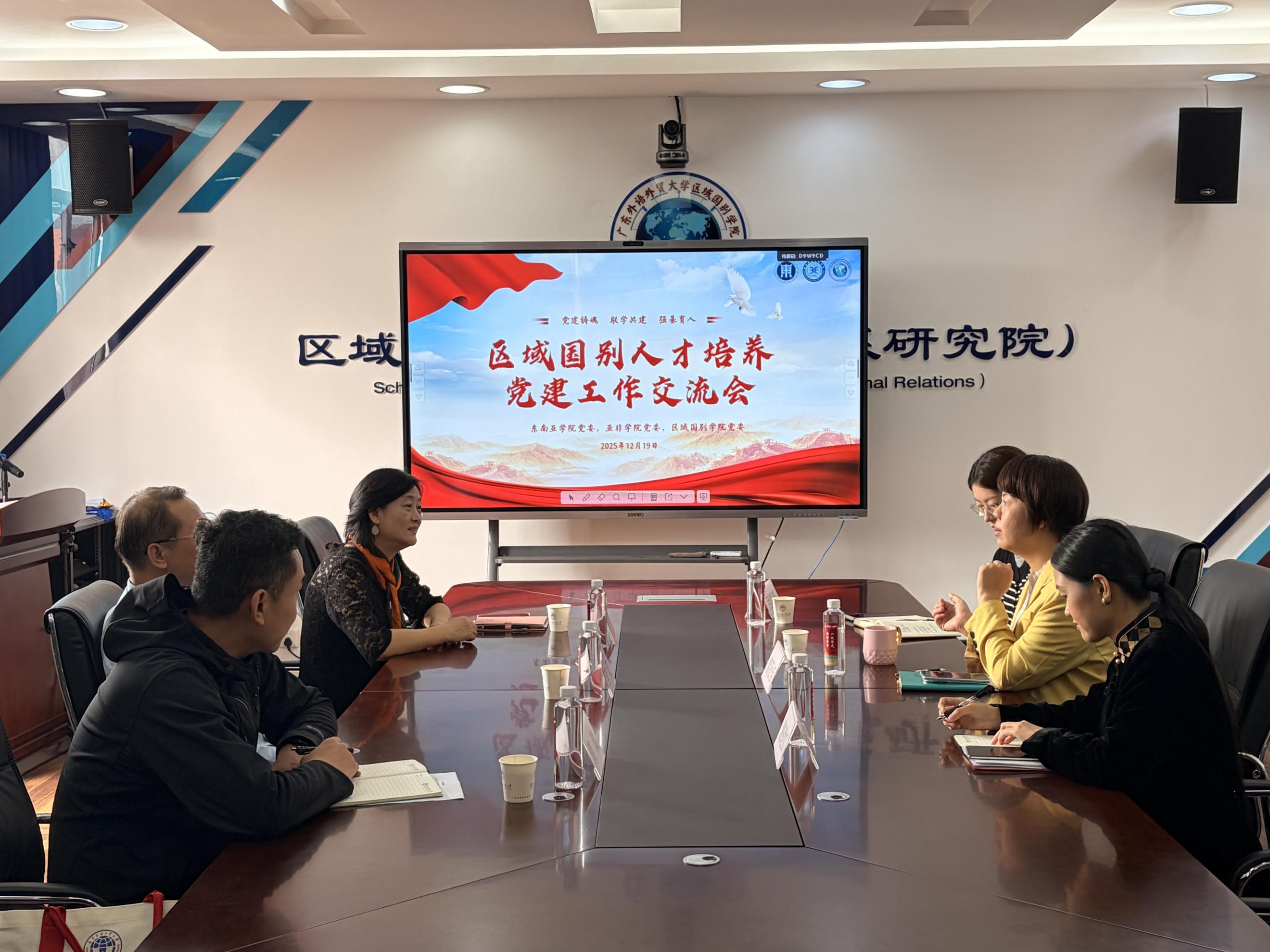 本网讯 12月19日上午,亚非语言文化学院党委联合区域国别学院党委、东南亚学院党委在区域国别学院会议室共同举办“区域国别人才培养党建工作交流会”。区域国别学院党委书记袁薇佳、东南亚学院党委李江和亚非学院党委书记梁洁及部分学院党办主任和组织员参加会议。