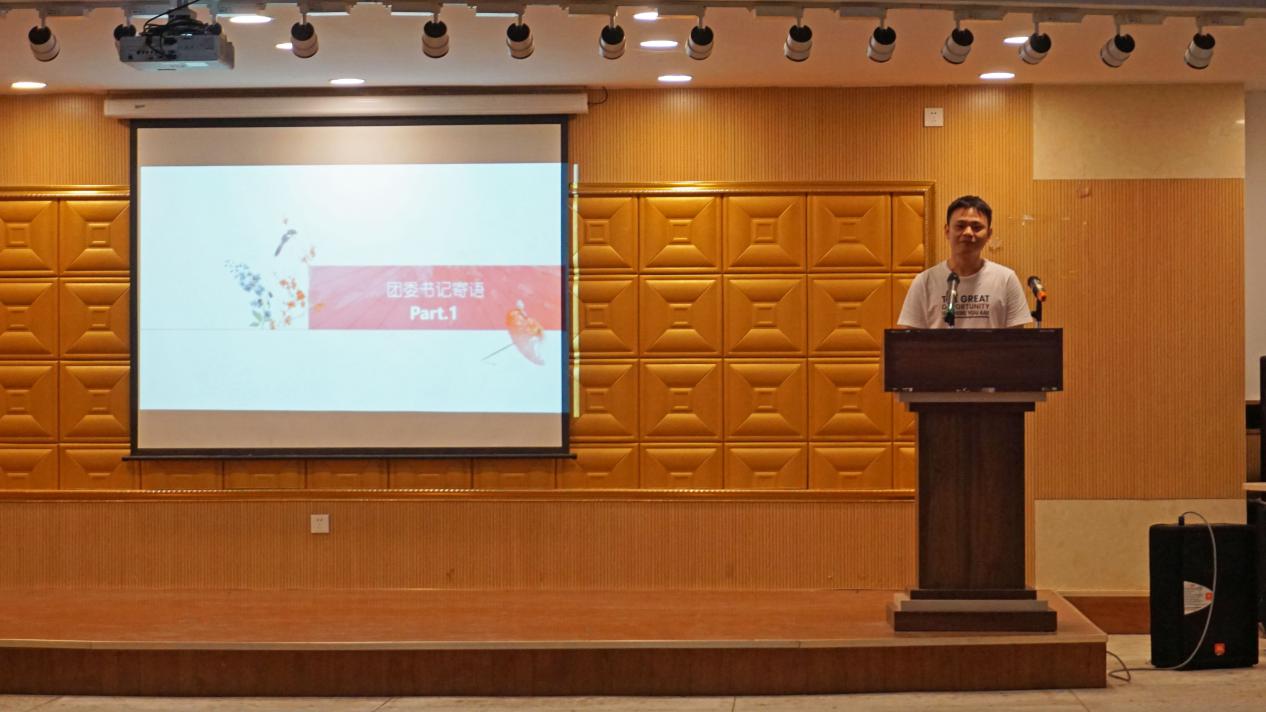 大会伊始,朱浩文老师代表学院团委发言。在发言中,朱浩文首先代表学院团委学生会欢迎新生力量的加入,并详细介绍了学院团委学生会的功能与职责。他从“不忘初心、牢记使命”角度出发指出,学院团委学生会是在学院党委和校团委领导下的青年学生组织,是一个全心全意服务学院、服务学生为宗旨的组织,是一个能够收获快乐,提高能力,实现自身价值的平台。学院团委学生会成员要不忘加入团学的初心,在工作中学习,在学习中成长。