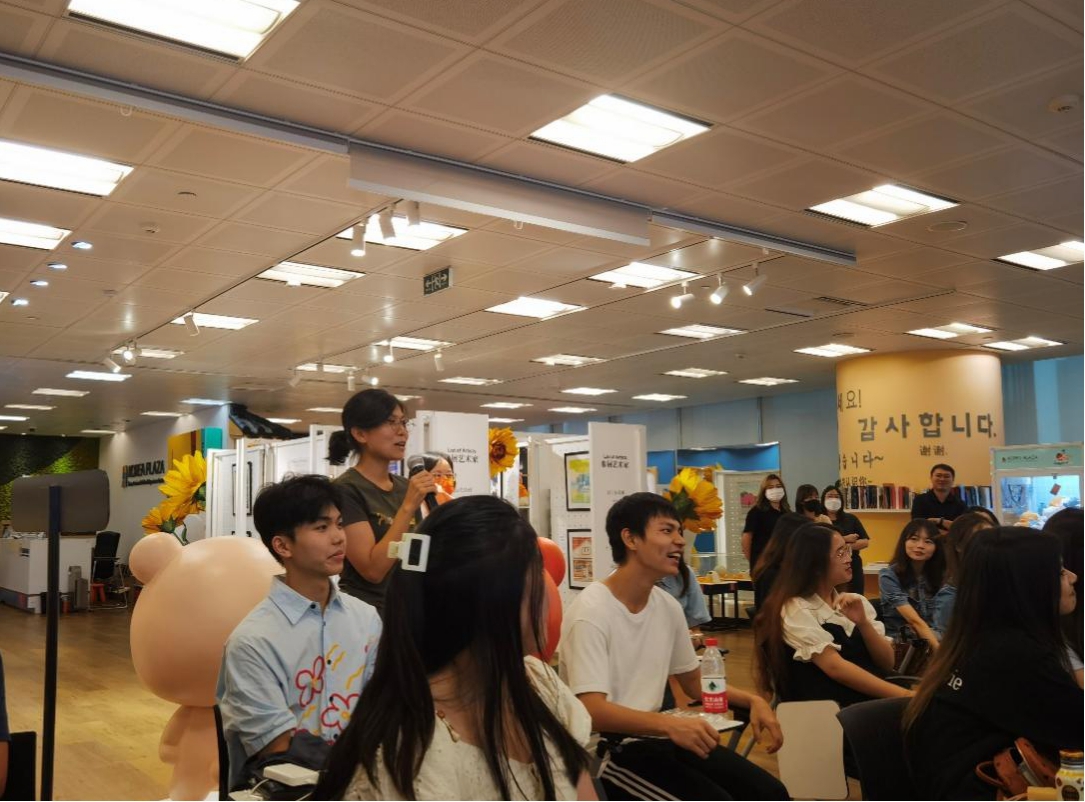 此外,本次参观活动还设置了一个特别的环节——邀请到了曾就读于我校亚非语言文学专业的研究生、现就职于旅游发展局的乔欣师兄来为朝鲜语系师生进行经验分享与答疑解惑。朝鲜语系的师生们积极提问、踊跃发言。而乔欣师兄也针对大家的疑问一一进行了解答。对于担忧未来发展的同学们,他也表现出了一种乐观主义的态度:“不必过于担心三五年后所发生的事情,当下最重要的还是提升自己”。在提问尾声,师兄和其他工作人员还分享了自己进入韩国旅游发展局工作的契机与面试经验,并鼓励在场的各位同学以后也可以把这个作为一种就业方向。