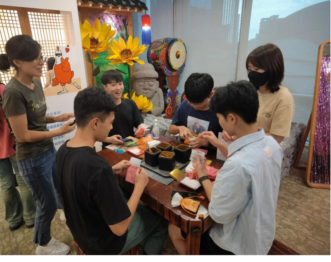 在讲座结束后,朝鲜语系师生与韩国旅游发展局广州办事处的各位工作人员合影留念,并参观了活动场地Korean Plaza。活动现场设置了制作香囊、投壶、“大邱”主题展览等一系列活动并准备了丰富的小礼品。朝鲜语系师生在参加体验活动,拓展对韩文化了解的同时,也收获了韩国旅游发展局广州办事处设置的许多富有韩国人文气息的小礼品和旅游手册。