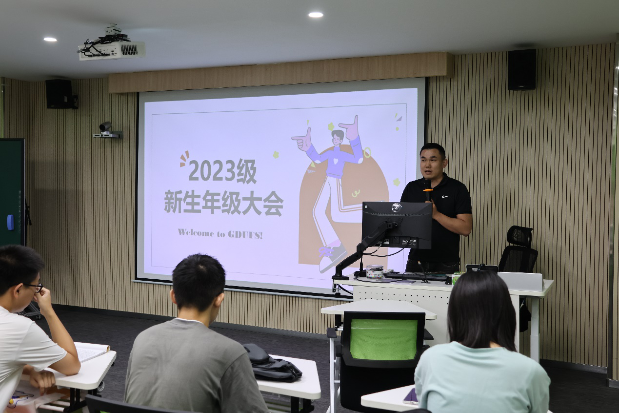 为帮助23级新生尽快融入大学生活,定位好大学学习生涯“坐标”,2023年9月7日晚,亚非语言文化学院召开2023级新生年级大会,会议由学院辅导员蔡昊主持。