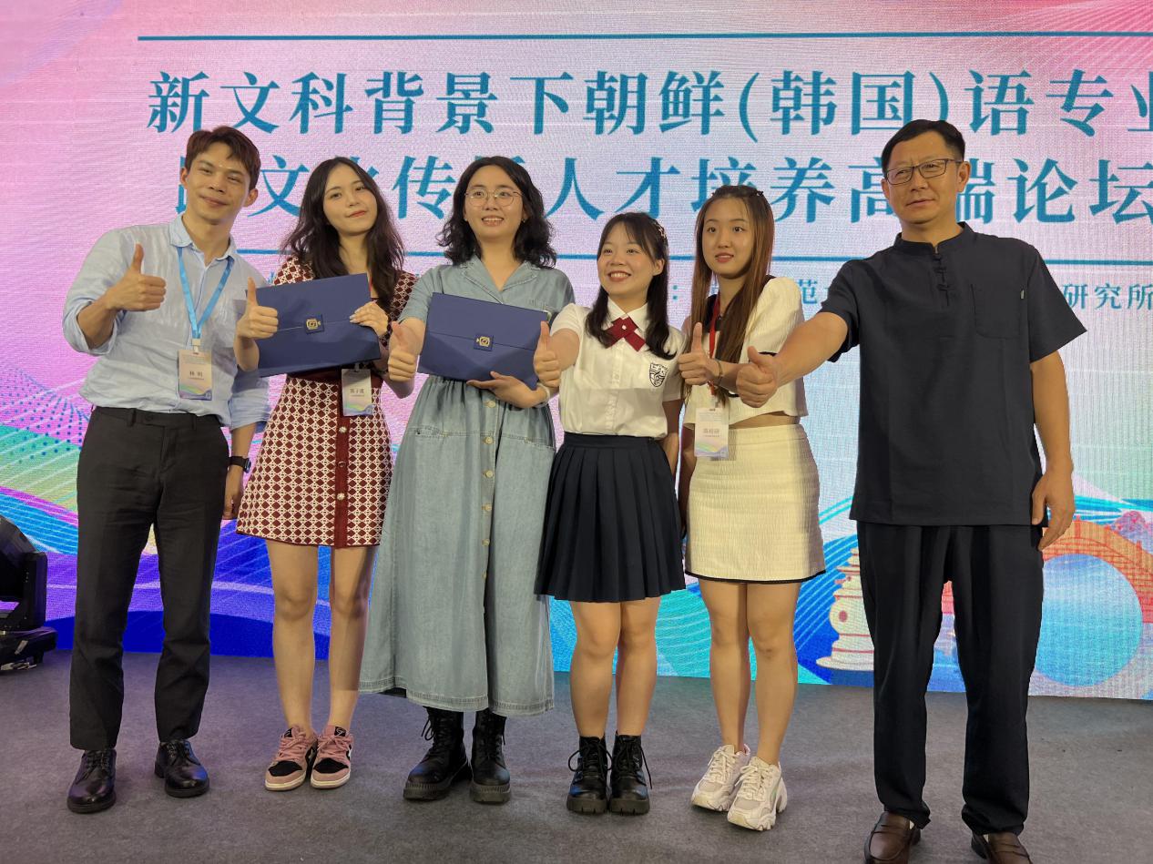 我校朝鲜语系学生积极参赛,经过一系列紧张的评审与筛选,我校学生多份作品脱颖而出。林明老师指导的陈子虞、朱文瑶小组以作品“Young-nam醒狮”获得二等奖;裴允卿老师指导的陈桂研、林欣庭小组以作品“凉茶”获得三等奖;朴香兰老师指导的曾家宝、杨妍小组也以作品“不一样的饮食文化:广州饮食文化”获得优秀奖。