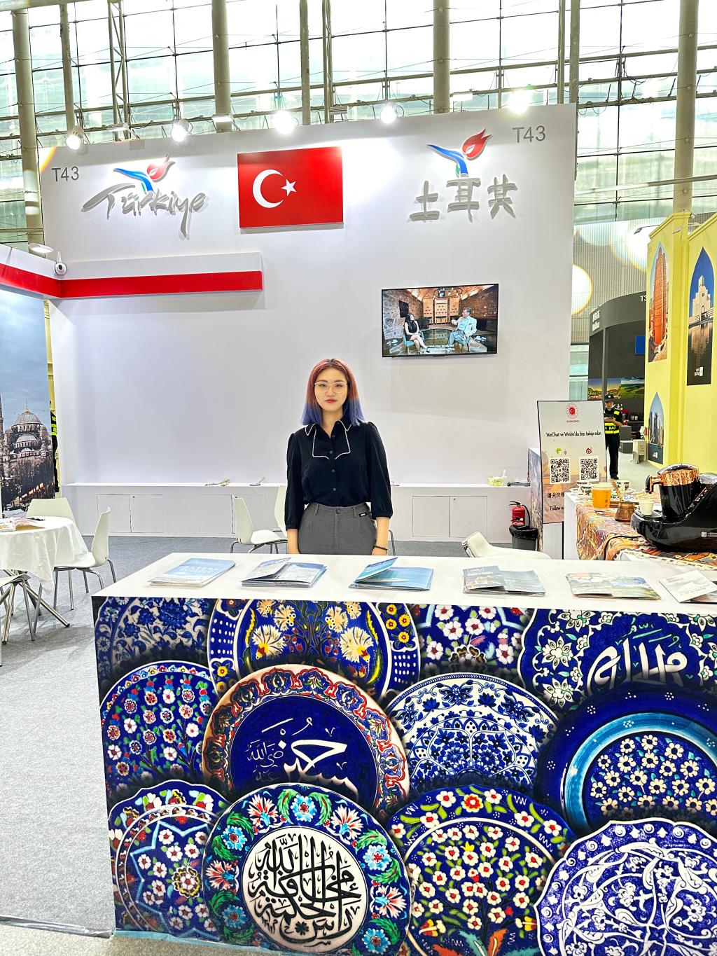 展会第二天,前往土耳其国家馆的访客络绎不绝,不少国际参展商和普通民众都前来了解土耳其独具魅力的文化和旅游资源。大二年级的胡静涵与张慧同学在忙碌的宣传与介绍工作中度过了充实的一天。