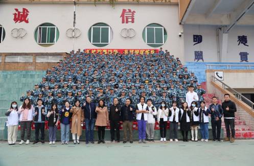 本网讯 1月10日下午,日语语言文化学院、亚非语言文化学院(筹)党委书记周秀娇,副院长张志刚、胡瑞,党委副书记曾智鹏,辅导员、2020级朋辈导师和学院团学成员一行来到2021级本科生军训训练场慰问我院全体在训新生。