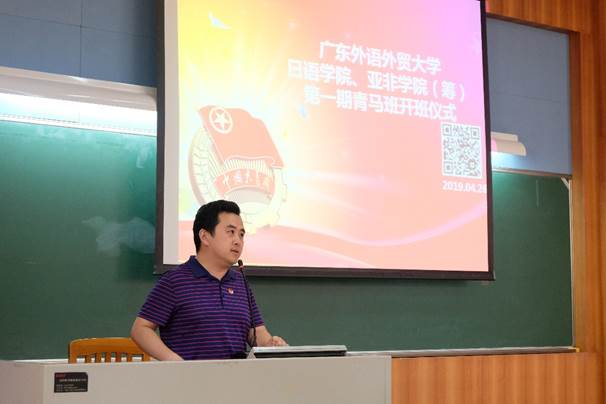 本网讯 为培养和造就优秀的青年马克思主义者,不断提高学生骨干的思想政治素质,4月26日下午,我院于七教107教室举行第一期“青马班”暨团委组织学生干部后备人才培养班开班仪式。校团委书记苏奕,日语学院、亚非学院(筹)党委书记周秀娇,学院党委副书记曾智鹏,辅导员朱浩文、许楚欣,第一期“青马班”学员及我院学生出席了此次开班仪式。