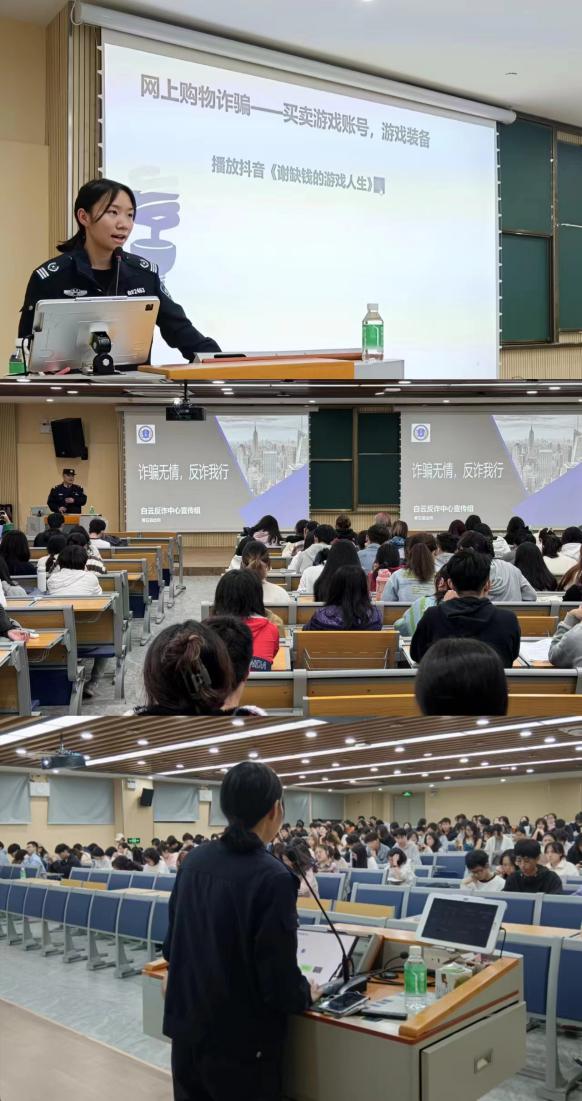 活动现场,民警们向同学们强调了电信诈骗的危害及渗透性,结合发生在校园的真实案例,就电信网络诈骗常见类型、惯用手法、作案方式、发案特点、新型手段以及防范技巧、应对措施等,向同学们进行了详细讲解。同时,就兼职刷单类信息、大额投资返利回报、购买游戏装备、冒充购物客服、二维码、验证码、网页链接、双卡买卖等诈骗常识进行了普及。