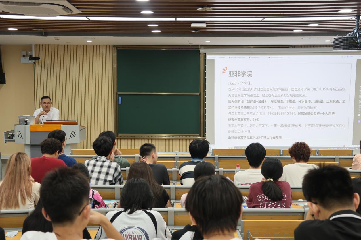 为帮助24级新生尽快融入大学生活,定位好大学学习生涯“坐标”,2024年9月4日晚,亚非语言文化学院召开2024级新生年级大会,会议由学院辅导员蔡昊主持。