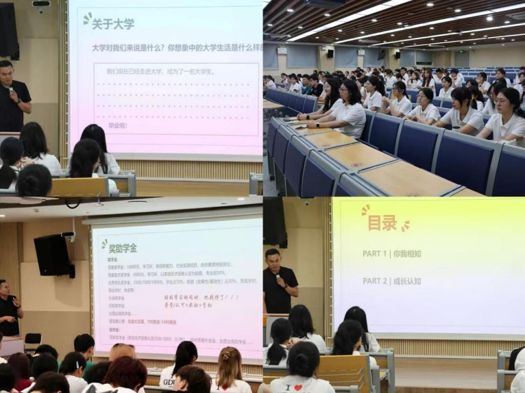 蔡昊首先向加入亚非学院大家庭的同学们表示诚挚欢迎,并围绕“你我相知”与“成长认知”两大主题,为新生的大学生活与学习提供了系统指导。他带领同学们回顾了亚非学院的办学历程,并就海外研修条件、学业完成标准、奖助体系概况和纪律管理办法等事项,说明了本科生及研究生在读期间的关键要点。在“成长认知”环节,蔡昊就未来发展规划、身份与思维转型、人际交往方法、核心与延伸能力培养、社会参与体验和安全防护等方面与同学们分享经验,引导大家积极适应大学生活,实现自我提升。最后,以“成功并非注定,却也源于注定;在抵达之前,我们更要日日精进,让每个当下的自己皆无愧于心”勉励新生坚定信念、持续努力。