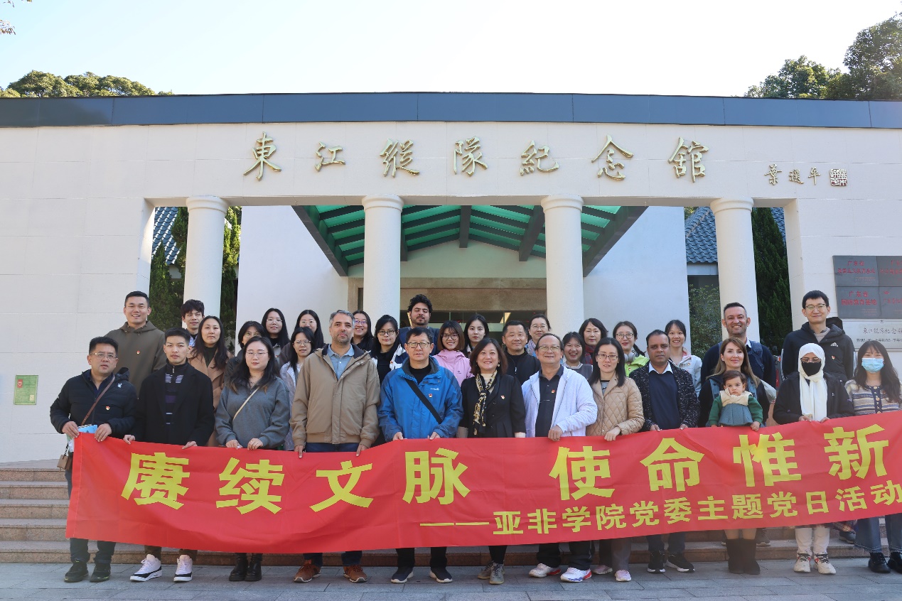 东江纵队纪念馆在抗日战争胜利60周年之际在罗浮山下建成,展示了500多幅真实的历史照片,陈列了98件东纵战士生活用具以及缴获的武器,包括东江纵队《前进报》印刷机、东江纵队、粤赣湘边纵队当年出示的布告等,集中展示了10位英雄人物和5个英雄集体的光辉事迹。党员教师开展党建活动的同时,来自亚非多国的外教们也走进东江纵队纪念馆,从革命历史到革命先烈的英勇事迹,他们对中国人民在抗日战争中不屈不挠的精神深感钦佩。