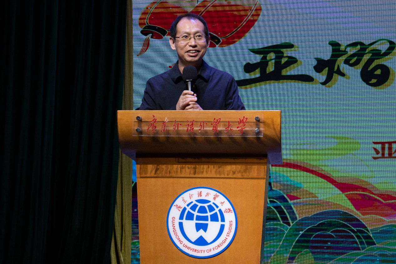 12月7日晚,亚非语言文化学院“亚熠星辉 非逐月华”2023迎新晚会在北校区第六教学楼报告厅举行。校党委常委、副校长申明浩,校学生工作部副部长叶开,亚非学院院长全永根、党委书记梁洁、党委副书记陈华荣、副院长牛子牧、院长助理田克萍、学院师生以及校友嘉宾广东众创友伴信息服务有限公司董事长区光耀等校友共同观看演出。