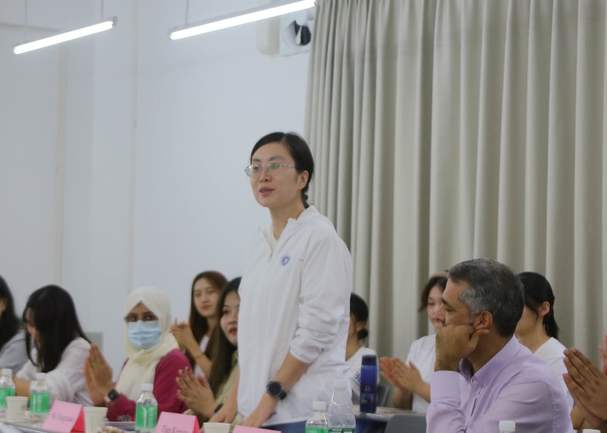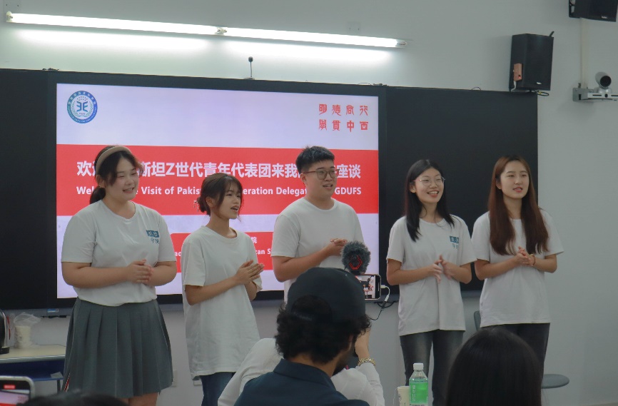 院长助理田克萍对与会者表示热烈欢迎,并向来宾介绍了亚非学院的历史、办学和人才培养的相关情况。她介绍说,我院各专业采用“专业语种+英语”的双语培养模式,同时采用“3+1”或“3.5+0.5”的国际合作模式办学。同时她还提出,希望我院培养的乌尔都语人才能够加强中国与巴基斯坦两国的友好关系,与在座的巴基斯坦青年共同为两国发展作出贡献。乌尔都语系主任李方达就乌尔都语系发展历程、人才培养、学生活动等方面向来宾进行介绍,表示乌尔都语系不仅致力于培养精通乌尔都语的人才,并倡导在中巴文化教育领域加强交流与协作。活动中,来自乌尔都语系的学生代表还为在场来宾演唱了巴基斯坦经典歌曲,受到了与会者的一致赞扬。在随后进行的座谈中,双方以文化交流为主题展开对话,涉及中巴两国媒体传播、体育、饮食及传统服饰等多个领域,座谈气氛非常热烈。