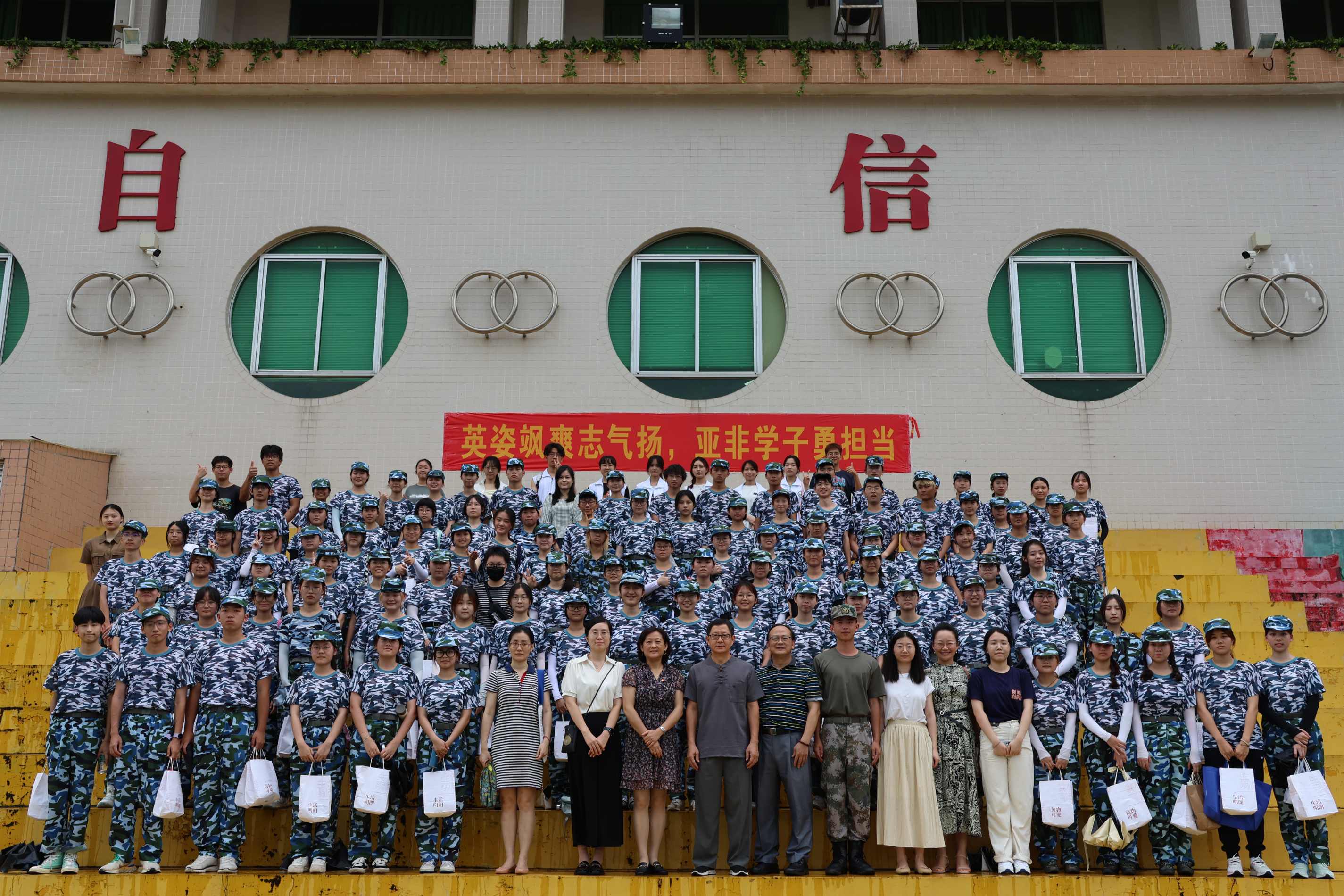 本网讯 6月25日下午4时30分许,亚非语言文化学院党委书记梁洁、院长全永根、党委副书记陈华荣、副院长牛子牧、院长助理田克萍、学院教师雷娟、鹿梦琪、游雨嫣及辅导员王静菲、全体2022级班导一行来到2022级本科生军训训练场,向学院参训新生以及承训教官送来慰问。