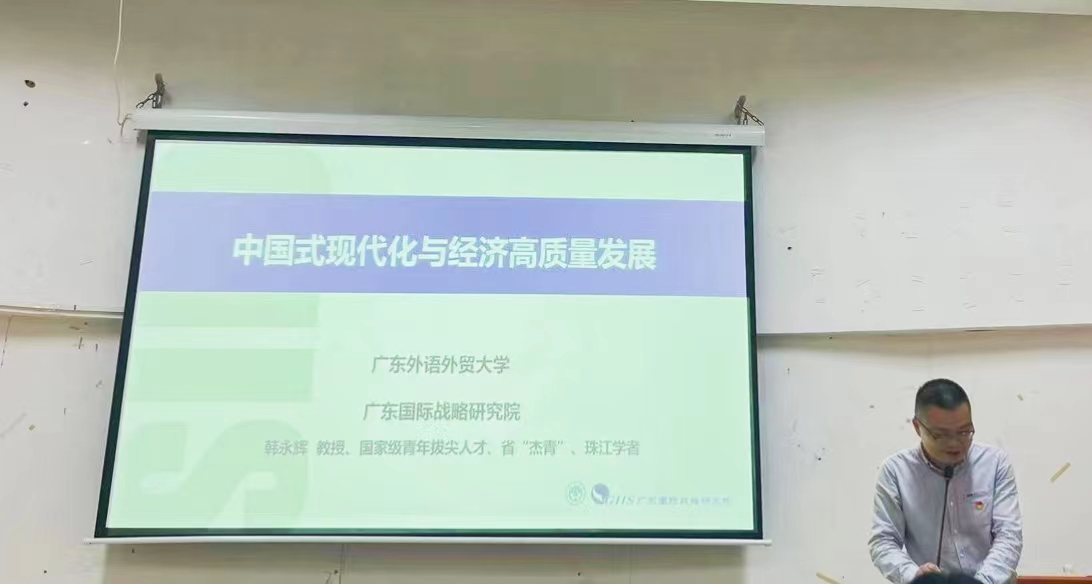 为深入学习贯彻党的二十大精神,深入推进主题教育落细落实,5月26日下午,亚非语言文化学院邀请广东国际战略研究院教授、博士生导师韩永辉作题为“中国式现代化与经济高质量发展”的专题讲座。讲座由学院党委书记梁洁主持,学院全体教职工和学生党员参加。