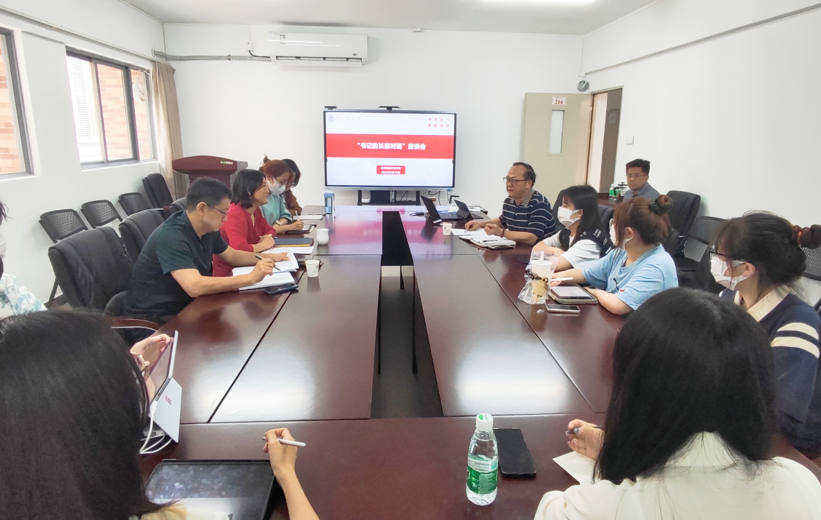 本网讯 为深入学习贯彻党的二十大精神,进一步加强师生之间的沟通交流,倾听学生心声,助力成长共话未来,5月18日下午3时30分,我院师生面对面座谈会在第一教学楼北楼216室顺利召开。学院院长全永根、学院党委书记梁洁、学院党委副书记陈华荣与我院20名学生代表进行了深入的座谈交流和调研。本次座谈会由陈华荣副书记主持。