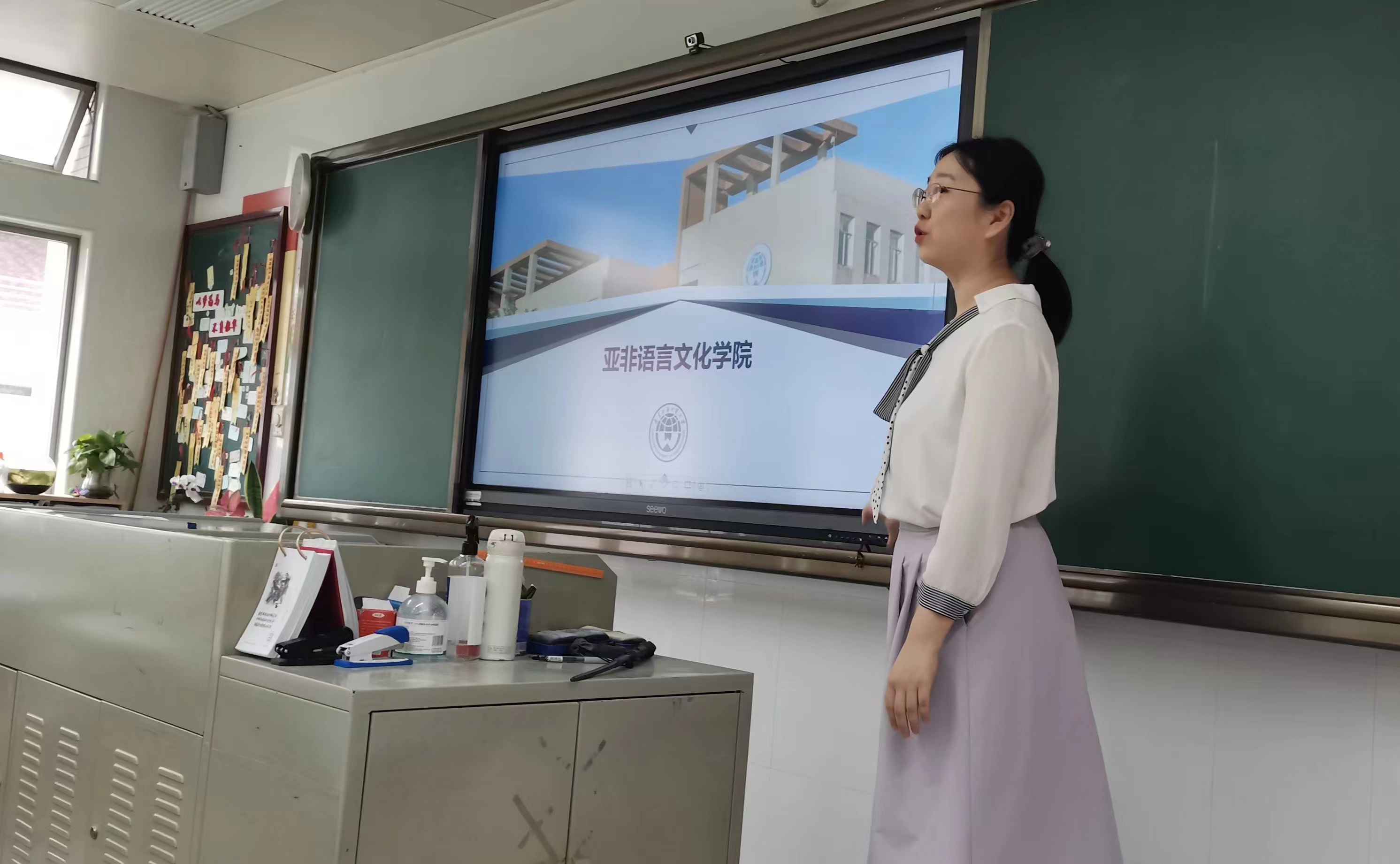 随后,李方达从多语种服务国家战略、复语+复合型人才培养模式、丰富的校内外实践活动、广阔和高层次的就业领域四个方面对亚非语言文化学院的情况作了介绍,并针对我院2023年招生的朝鲜语、阿拉伯语、印地语、土耳其语、波斯语和乌尔都语6个本科专业进行了专业特色分享。