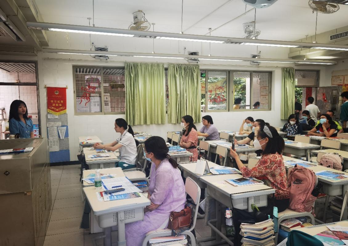 宣讲后梁洁书记还与广东实验中学课程中心主任胡正勇就今后广外教师和课程进校园等常态化合作进行了交流和探讨。