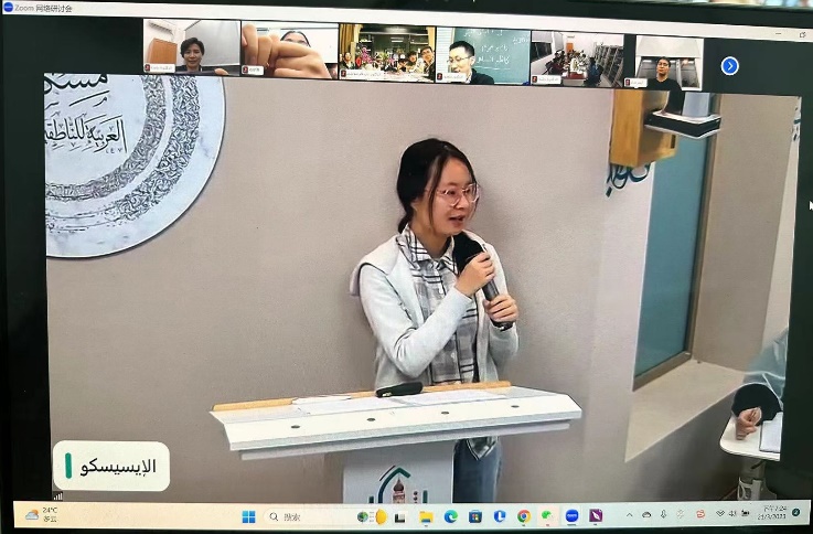 我校阿语系师生主要就“中国阿拉伯语教育的现状与困难”议题展开讨论。阿语系教师劳凌玲副教授指出,随着“一带一路”倡议的提出和推进,阿拉伯语在中国受到越来越多的关注,学习阿语的人逐年增加。广外所在的广东省历史上曾是海上丝绸之路的重要起点,如今与阿拉伯世界的人文交流和商贸往来日益频繁,广外阿拉伯语专业的重要性不言而喻,但是也面临着许多问题,如学生缺乏足够的语言文化交流机会、教学和学习资料不足等问题,希望将来广外能与伊斯兰教科文组织在教学科研、文化交流和培训等领域开展更多合作,这不仅将促进广外阿语学科的建设,同时也对中阿友好往来产生积极的作用。阿语系2020级学生叶淳琪同学表达了在阿拉伯文学作品的赏析过程中,遇到因中阿文化差异造成的内容难以理解的困扰;萧泽锋同学则提及了在语音阶段遇到的困难和语言环境的缺失,以及课程安排与学习材料等问题。