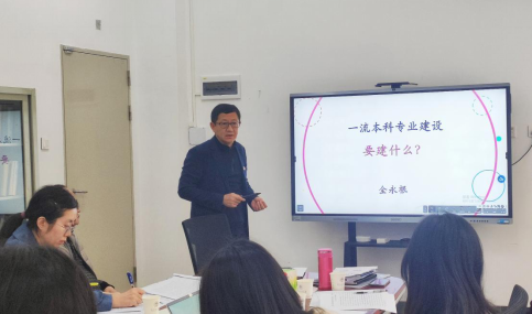 会议第二部分由全永根院长主持并做演讲,他以“一流本科专业建设要建什么?”为主题,向学院系主任和专业负责人做专业建设培训。全永根以一流专业建设总目标为切入点,从建设师资队伍、创新人才培养模式、加强课程建设、提升科研能力和开发教育环境五个方面为一流专业建设提出要求。他强调,课程建设是一流本科专业建设的重点,要以师资队伍、教学研究和教材建设为支撑培育一流课程,培养优质人才,落实立德树人根本任务。