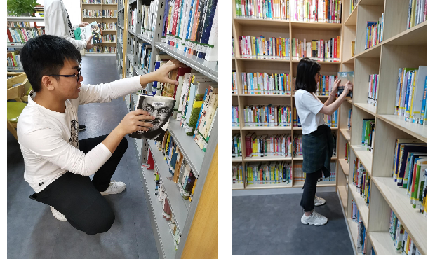 参观学习后,志愿服务队全体党员开始进行志愿工作,服务的地点是三元里图书馆,工作内容主要是分类整理图书,给予当地市民便利。社区图书馆是三元里市民提升自身文化素养最便捷的场所,此次志愿活动既可以服务群众、帮助市民,也让党员了解三元里文化,提高文化自信。每位党员都用自己的实际行动践行着共产党人的初心,诠释了爱国的精神。