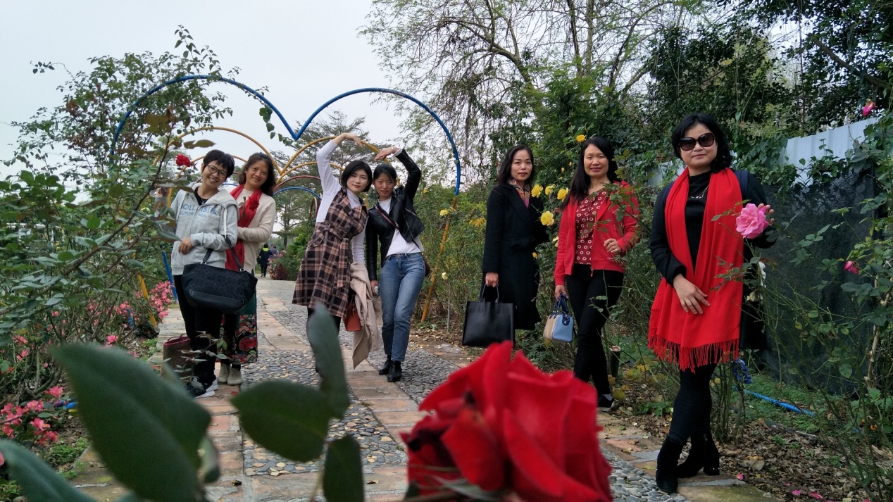 出游地点选在宝趣玫瑰世界主题公园。宝趣玫瑰园位于著名从化美丽乡村之称“西和村”,坐落于北回归线沿线,有独特的亚热带气侯,生态环境优美,占地1000多亩;2007年12月开园,是国内首个以玫瑰文化为特色的主题公园,也是一个集生产、销售、科普教育﹑休闲观光为一体的多功能综合性主题公园。教职工们三五成群漫步在花海中,不时在花丛、建筑前停下脚步留影,欢声笑语不断。最后大家满意而归。