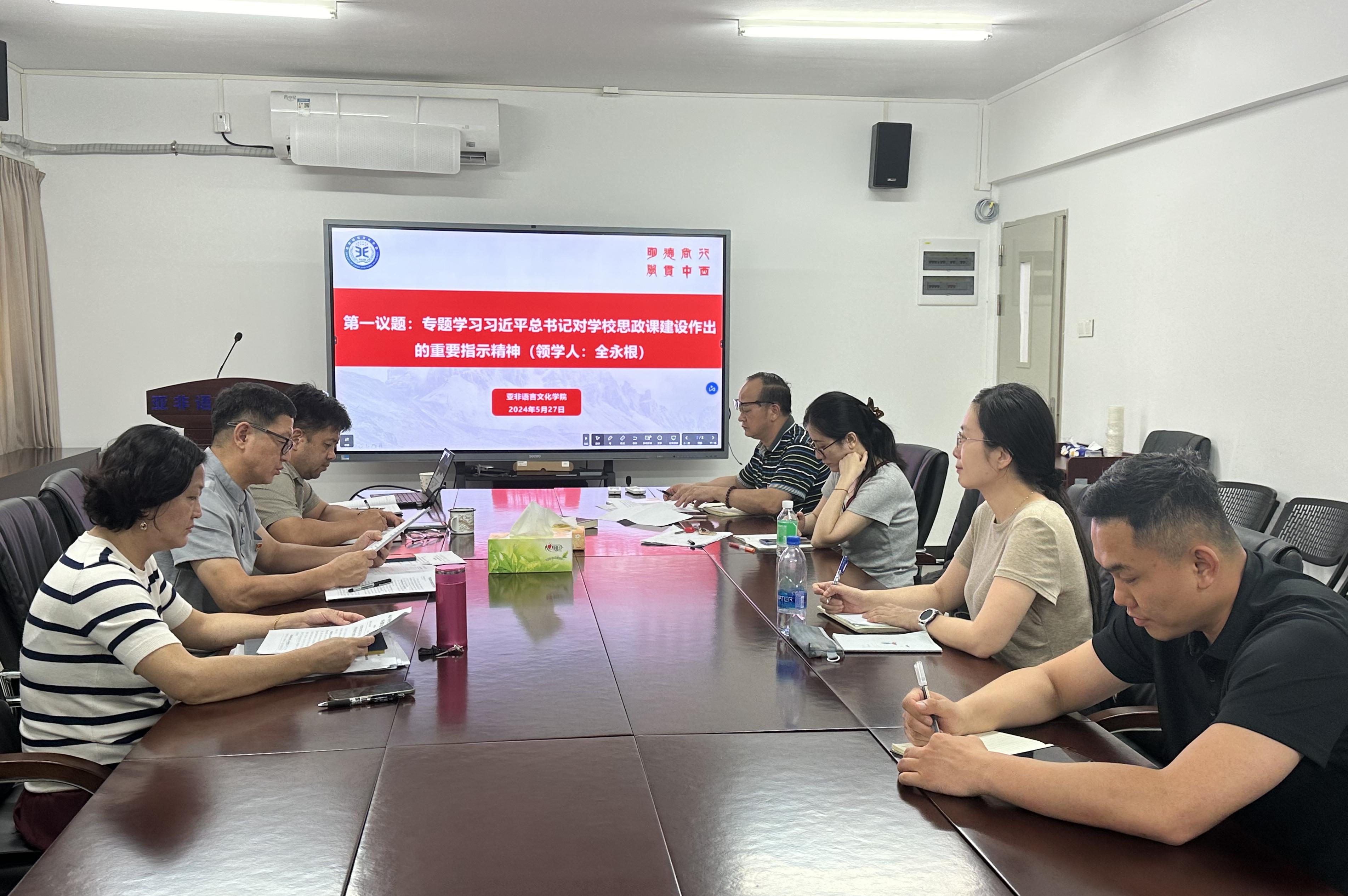2024年5月27日,亚非学院党委专题学习习近平总书记对学校思政课建设作出重要指示精神,会议由亚非学院党委书记梁洁主持,全永根院长领学。