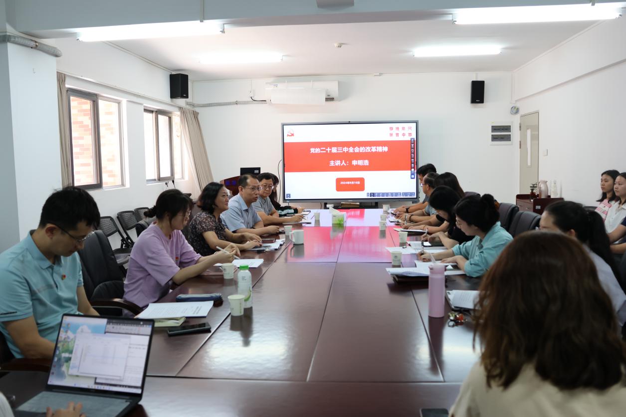 9月10日下午,为深入学习贯彻党的二十届三中全会精神,学校党委常委、副校长申明浩教授为亚非语言文化学院党员师生代表上了一堂以“党的二十届三中全会的改革精神”为题的精彩党课。