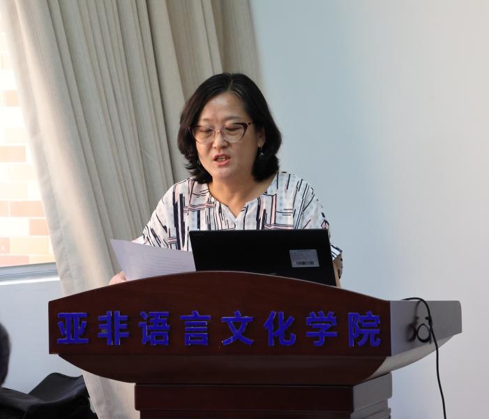 随后,导师们介绍了各自的研究方向、课题及主持项目,从国际交流、实习实践、学术讲座、论文撰写、就业前景、专业发展等全方位与学生们展开交流答疑。“一带一路”沿线国家文化研究方向导师赵菡菡向同学们介绍了专业的师资队伍与研究方方向并进行了文化展示;朝鲜语口译专业负责人金美老师和导师朴香兰老师针对朝鲜语口译专硕的实践要求、论文规范、就业方向和前景进行解读。阿拉伯语专业牛子牧副院长解释了阿拉伯语专业从亚非语言文学专业独立的历程和所获学位的变更,并分享往届的良好就业形势。