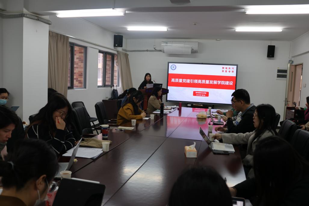 梁洁在开场中强调了高质量党建在引领学院高质量发展中的关键作用,指出党建工作的扎实开展是推动学院各项事业蓬勃发展的核心动力。