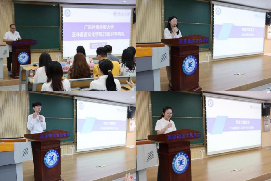 本网讯 2025年9月11日下午,广东外语外贸大学亚非语言文化学院2025级新生开学典礼于北校一教南楼109室顺利举行。会议由陈华荣副书记主持,学院院领导、系主任、专业负责人和全体新生参加开学典礼。