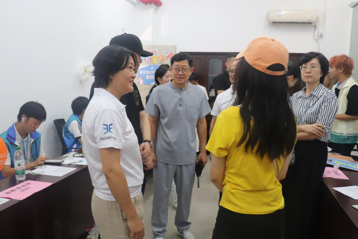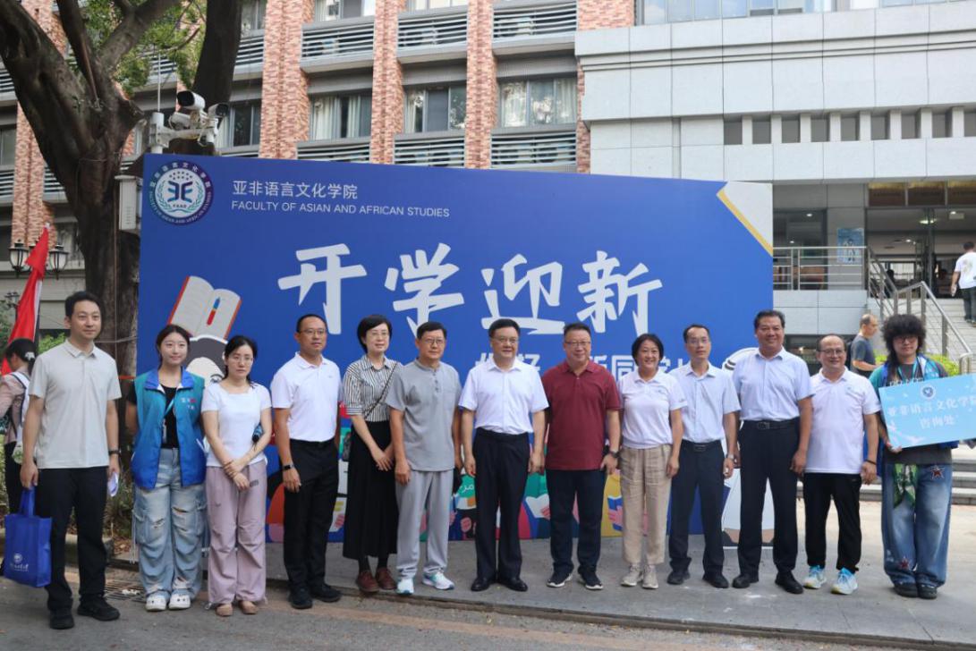 本网讯 2025年9月7日,广东外语外贸大学亚非语言文化学院2025级新生报到工作顺利开展。校党委书记石佑启、副校长谢伟光、党校办主任包生耿、教务部部长陈金诗、保卫部部长余泽浩一行到学院迎新现场亲切看望来报到的新生和志愿者。亚非学院院长全永根、党委书记梁洁等院领导一行在现场与新生及家长亲切交流,详细了解学院新生报到情况。